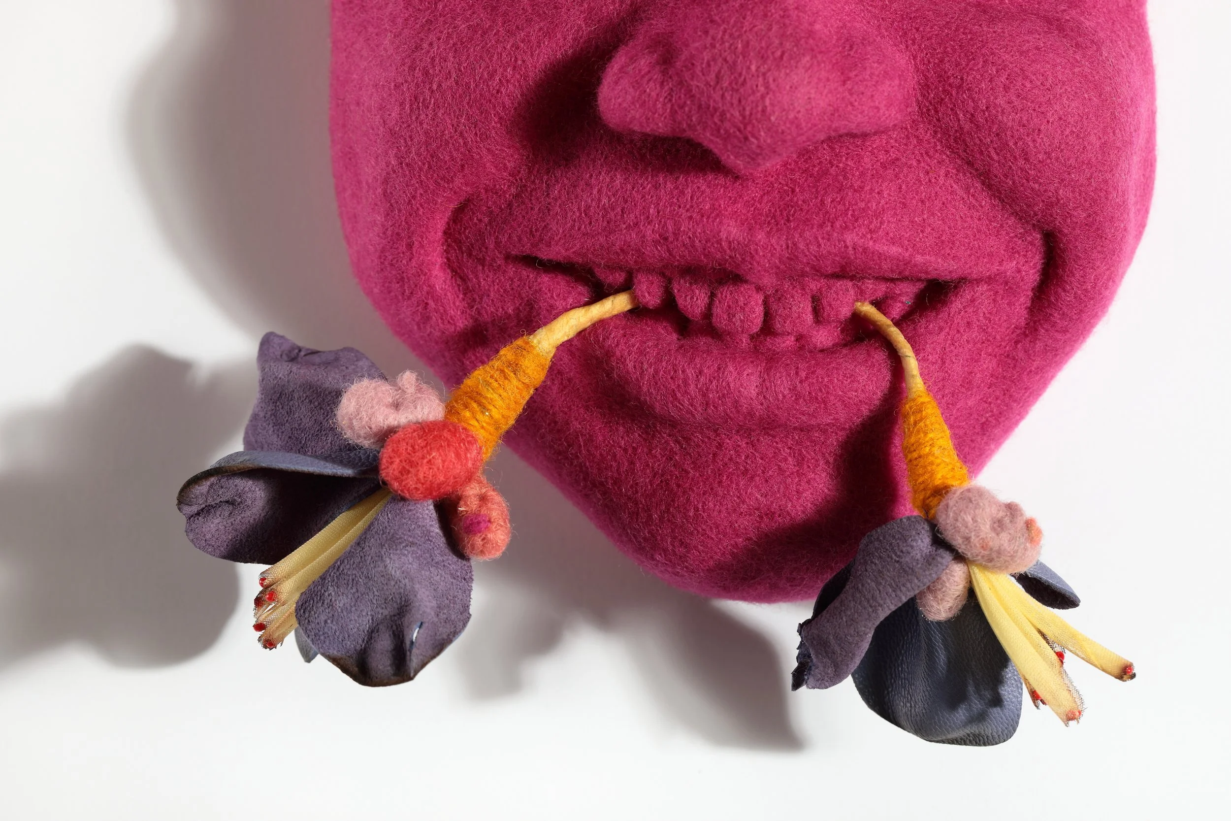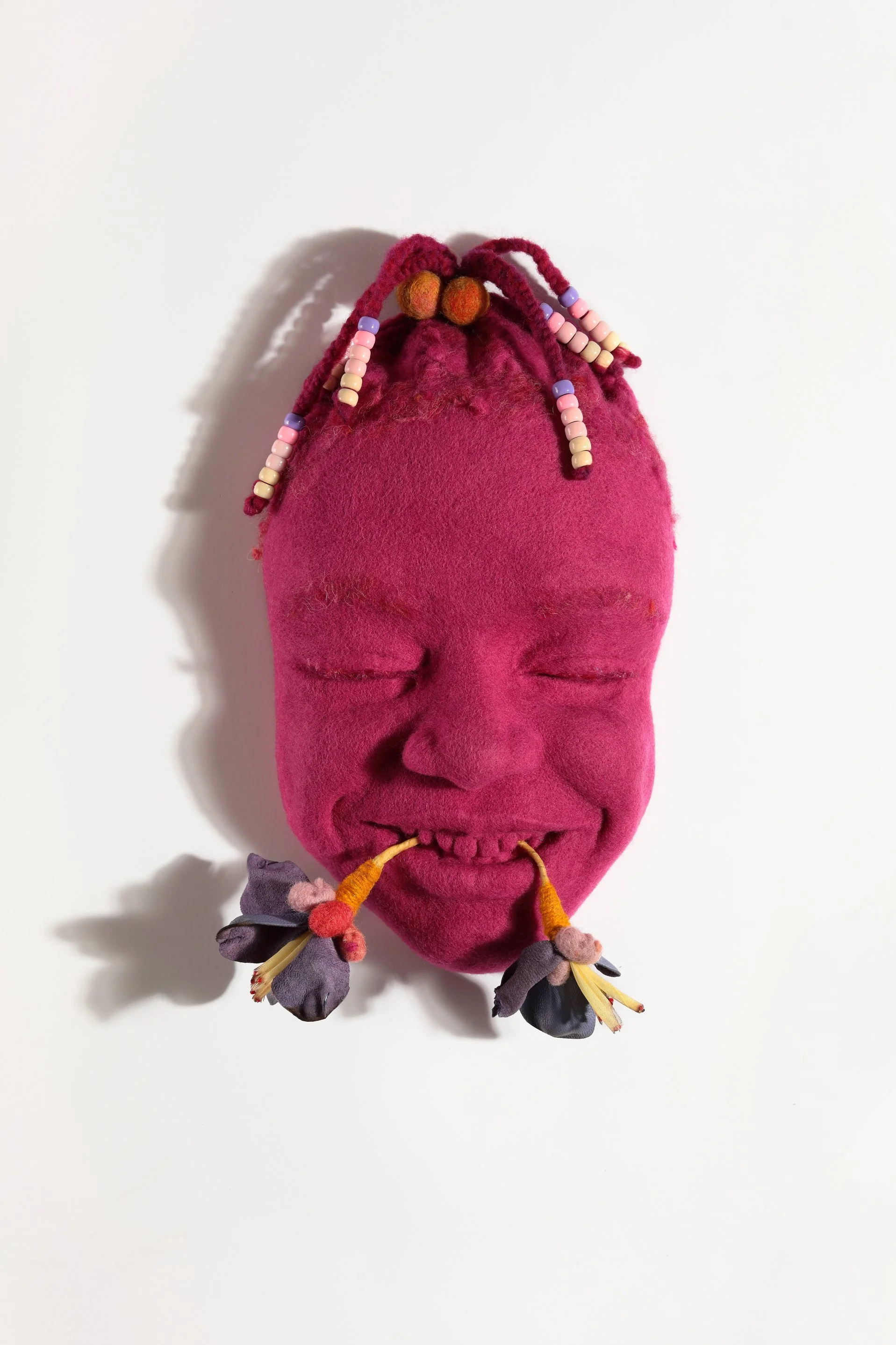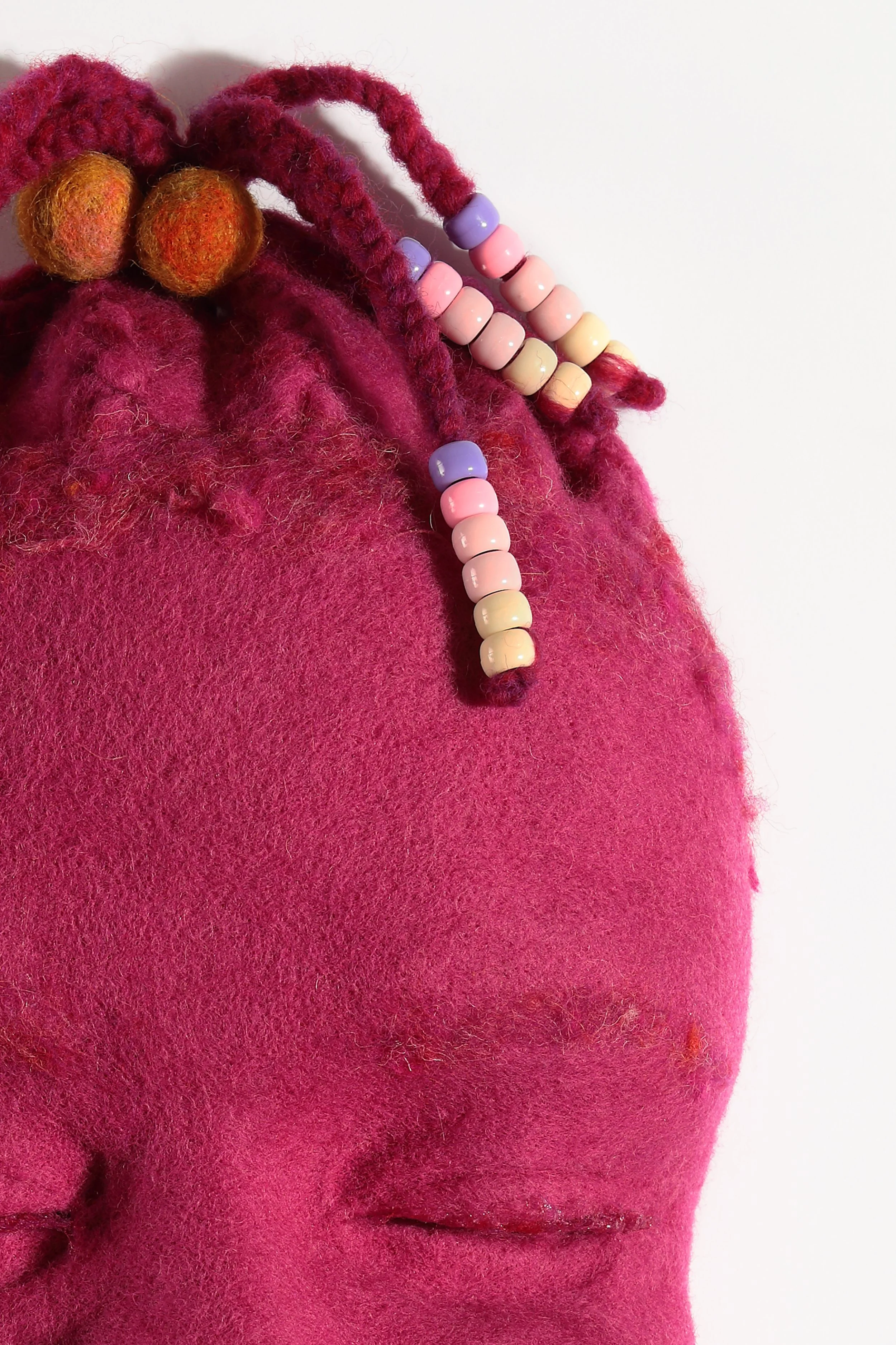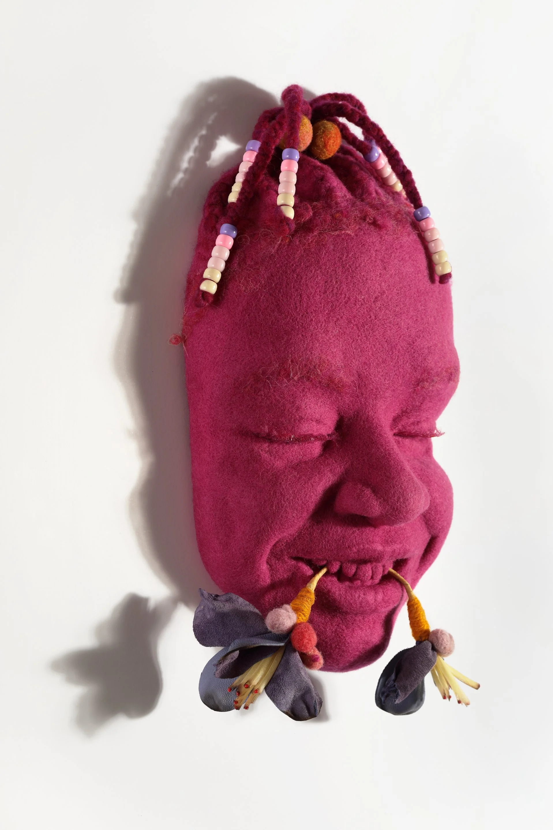 wool, leather, pony beads, glass beads